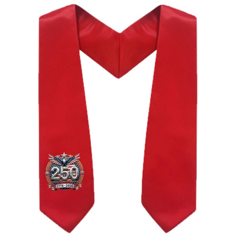 Celebrate America’s 250th Anniversary. Honor your graduates and show patriotic pride with a commemorative stole. Choice of red, white, blue, or silver.